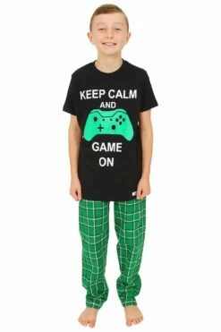 Exclusive to pyjamas.com – you will not find these anywhere else! These cheeky “Keep Calm and Game On” pyjamas feature a controller on the front of a long sleeved top with matching checkered bottoms. These are sure to be a firm favourite in his pyjama drawer.