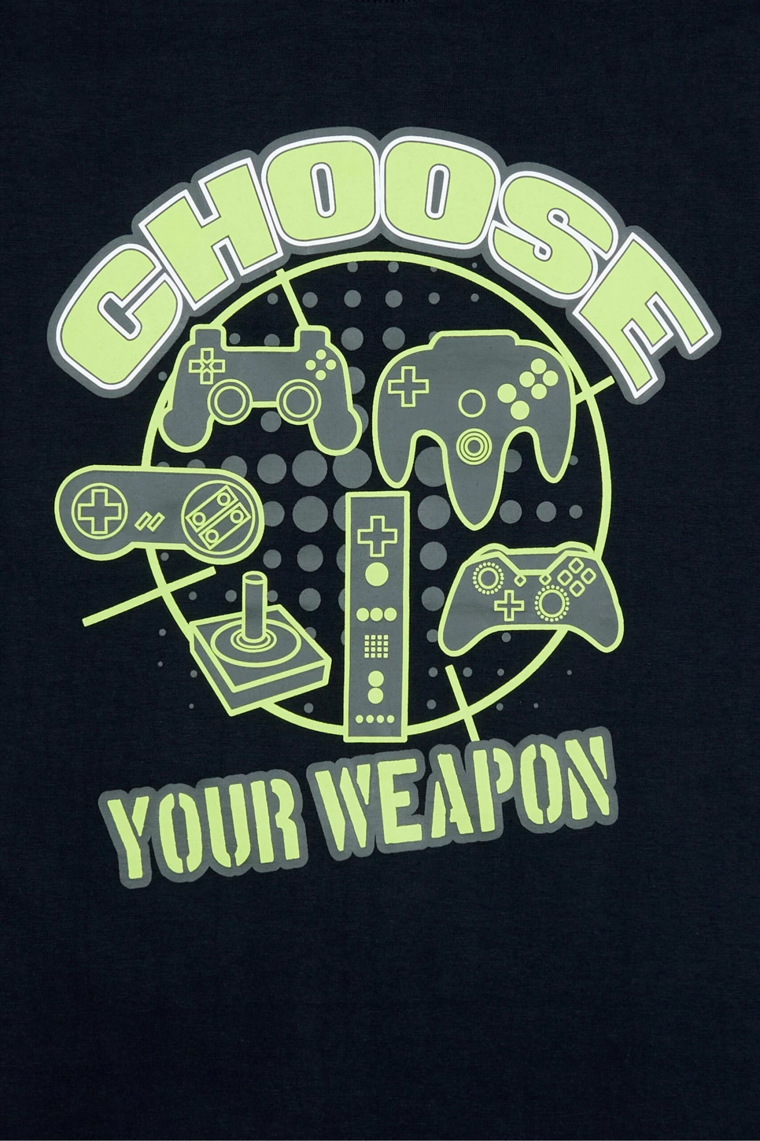 Send your gamers off bed with these cool “Choose Your Weapon” Short pyjama set.