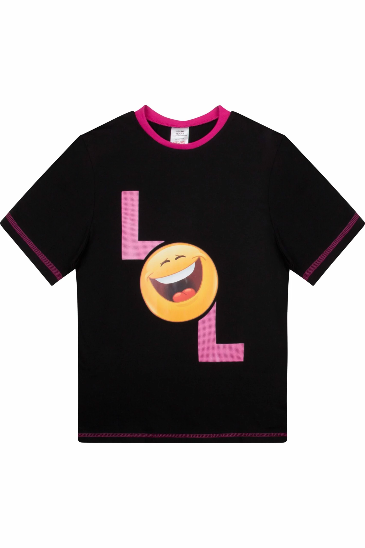 Girls pyjama set with a “LOL” slogan printed across the front .This set is complete with matching elasticated short bottoms with all over Laugh Out Loud Design design. This will be a firm favourite in pyjama drawers.