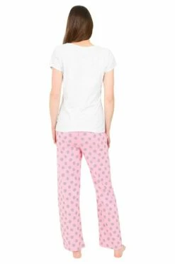 Lovely quality Ladies pyjama set. This set includes a short sleeved top featuring Minnie and Mickey Mouse with matching Heart print bottoms.