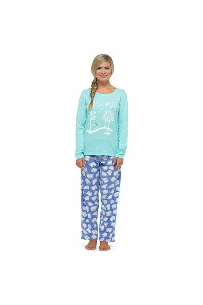 Ladies Winter Polar Bear Blue Long Sleeve Pyjama Set.